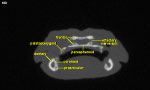 Click on the thumbnail below for a description of internal features of the skull based on selected coronal slices.