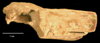 This braincase is taken from the London specimen of Archaeopteryx (BMNH 37001). It was collected from the Solnhofen limeston (Tithonian - late Jurassic in age) in Bavaria, Germany in 1861. This specimen was scanned for Dr. Angela Milner of the Department of Palaeontology, The Natural History Museum (London), John Cookson of the University of Hertfordshire at Hatfield, and Dr. Timothy Rowe of The University of Texas at Austin.