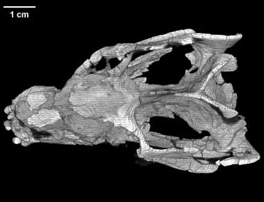 Exaeretodon is at the heart of a controversy as to which eucynodonts are the closest extinct relatives of mammals. One group argues that even though Exaeretodon shows many seemingly unique resemblances with mammals, it lies out on a distant side branch with other extinct herbivorous eucynodonts. Most researchers accept an alternative view, that Exaeretodon is a close relative of mammals. We scanned this specimen to look for new evidence in the braincase, snout, and pattern of tooth replacement that might have bearing on this controversy.