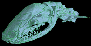 This specimen was scanned by Matthew Colbert and Jessie Maisano on 10 March 2008 along the coronal axis for a total of 674 1024x1024 pixel slices. Each slice is 0.01944 mm thick, with an interslice spacing of 0.01944 mm and a field of reconstruction of 8 mm.